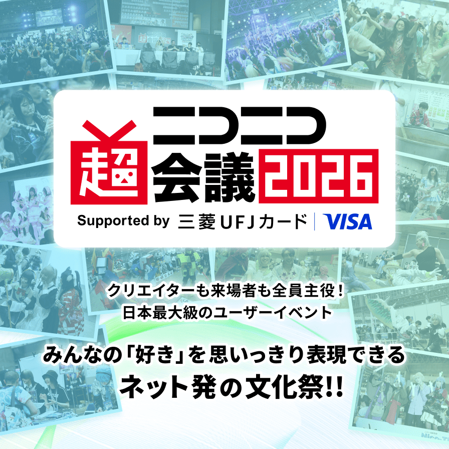 『ニコニコ超会議2026』は来場者、運営、視聴者が一体となり、ネット発祥の人気コンテンツが地上(幕張メッセ)に集まったみんなでつくる日本最大級の文化祭です。