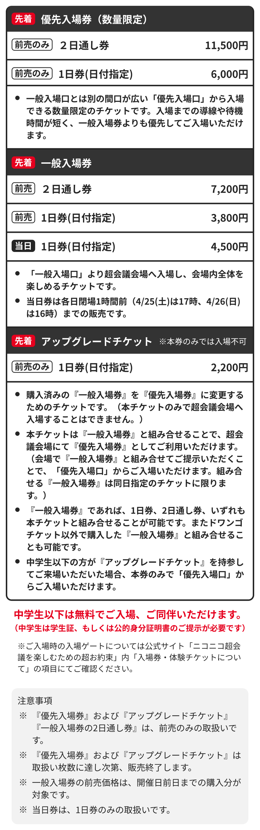 ※チケットは、4月10日(金)頃より順次ドワンゴチケットのマイページよりご確認いただけます。